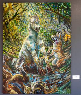 In the Spring of 2021, Mary Wilhelm presented her solo thesis exhibition “Fable” in ASU’s Harry Wood Gallery. The “Fable” series is a collection of narrative works that encourages the consideration of both the complex relationships of animals, our relationships with each other, and is based on a reconceptualization of Aesop’s Fables.